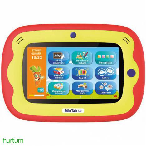 Tablet Mio Tab 3.0 zawiera 8 obszarów edukacyjnych: alfabet i słowa, nauka pisania, cyfry i logika, zwierzęta, dźwięki i rysunki, szkoła angielskiego, gry pamięciowe i puzzle, rebusy i zgadywanki.