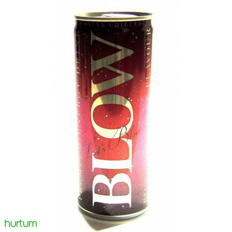 BLOW Pink Energy Drink 250 ml - gazowany napój energetyzujący. Wysoka zawartość kofeiny (32 mg/100 ml). Środek spożywczy specjalnego przeznaczenia żywieniowego wskazany dla osób narażonych na zwiększony wysiłek fizyczny i psychiczny. Niewskazane dla dzieci, diabetyków, osób wrażliwych ma kofeinę, kobiet w ciąży i karmiących. Składniki: Woda, cukier, regulatory kwasowości; kwas cytrynowy i cytryniany sodu; dwutlenek węgla, tauryna (0,2%), aromaty, kofeina (0,03%), koncentrat z czarnej marchwi, inozytol (0,02%), witaminy; niacyna, kwas pantotenowy, witamina B6, witamina B12, barwnik, karmel E150d. Przechowywać w suchym i chłodnym miejscu. Nie zamrażać Blow to napój energetyzujący stworzony z myślą o młodych, ambitnych, pewnych siebie kobietach. Unikalna receptura na bazie naturalnych składników, wzbogacona witaminami, błyskawicznie regeneruje organizm oraz poprawia kondycję skóry, włosów i paznokci. Kobiety wybierają Blow zawsze wtedy, kiedy potrzebna jest dodatkowa energia niezbędna do działania i podejmowania nowych wyzwań. Subtelny smak pink i estetyczna, poręczna puszka są wyjątkowo cenione przez klientki. Wyprodukowany w Polsce. Pojemność: 250 g. W kartonie: 24 sztuk.