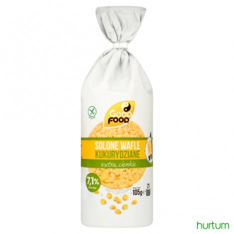 Jeśli uwielbiasz przekąski, a zarazem chcesz się zdrowo odżywiać, łatwo to pogodzić: po prostu musisz spróbować pysznych wafli kukurydzianych Good Food. Produkowane są z najwyższej jakości pełnoziarnistej kukurydzy, a specjalny sposób ich wypieku pozwala zachować wszystkie jej cenne właściwości odżywcze. Nie zawierają glutenu, są niskotłuszczowe, zawartość cukrów jest bardzo niska, a jeden wafel to tylko 19 kalorii! Ziarno kukurydzy jest doskonałym źródłem cennego błonnika pokarmowego. Skosztuj extra cienkich, naturalnych wafli z dodatkiem soli morskiej do smaku i chrup do woli bez wyrzutów sumienia.