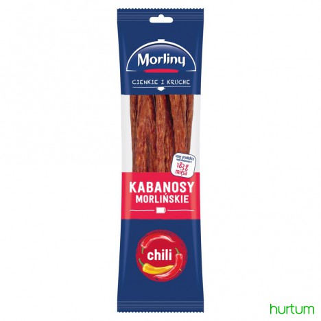 Skład: Mięso wieprzowe, substancja żelująca: alginian sodu; stabilizatory chlorek wapnia, celuloza; sól, regulatory kwasowości: mleczan wapnia, kwas cytrynowy; sacharoza, glukoza, warzywa suszone (papryka czerwona, cebula przyprawy (kmin rzymski, chilli 0,01%, pieprz czarny, czosnek mielony), aromaty, olej roślinny rzepakowy, ekstrakt drożdży, przećwutleniacz izoaskorbinian sodu; substancja konserwująca: azotyn sodu.