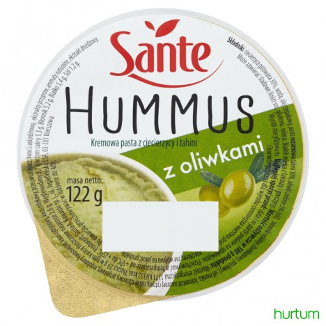 Hummus z oliwkami Kremowa pasta z ciecierzycy i tahini. Wyrób sterylizowany.