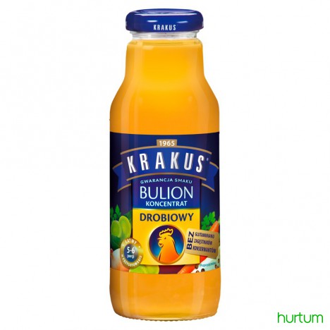Bulion o bogatym, drobiowym aromacie jest bazą zup i sosów. To podstawa tradycyjnej kuchni, której fundamentem jest głęboki smak. Bulion Drobiowy Krakus zachwyca wyrazistością i zarazem delikatnością, a jego sprawdzona receptura jest gwarancją wybornej potrawy podawanej na co dzień i od święta. Rozcieńcz go z wodą i dodaj ulubione składniki. Na bulionie możesz przygotować swoją ulubioną zupę lub dodać do risotto.