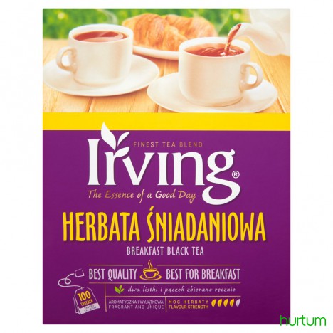 Poranek z Herbatą Śniadaniową Irving to zapowiedź udanego dnia! To oryginalna kompozycja wysokogatunkowych herbat czarny z Indii i Kenii, dająca bursztynowy napar o intensywnym smaku i odpowiedniej mocy - tak potrzebnej z rana. Subtelna, cytrusowa nuta bergamotki czyni z niej idealny napój do śniadania. Doskonale smakuje z plasterkiem cytryny lub odrobiną miodu. Zacznij dzień dobrze z Herbatą Śniadaniową Irving!