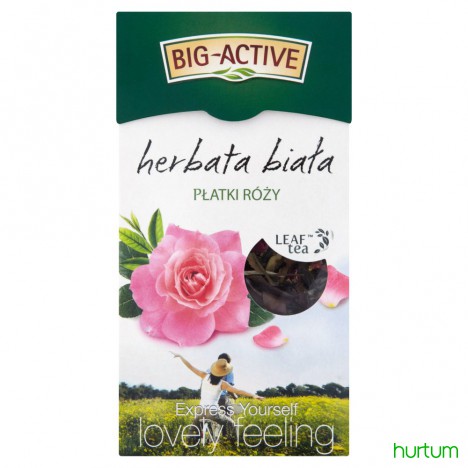 Herbata biała z dodatkiem płatków kwiatów, aromatyzowana, liściasta.