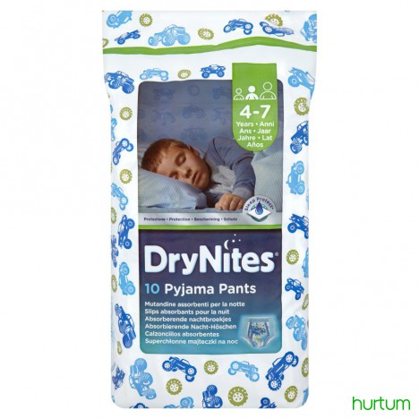 DryNites - superchłonne majteczki, które pomagają przejść przez etap nocnego moczenia. Produkty są dyskretne i przypominają bieliznę - zakłada się je i zdejmuje jak zwykłe majteczki, co sprawia, że dzieci mogą poczuć się pewniej w czasie snu. Wariant dla chłopca w wieku 4-7 lat (17-30 kg).