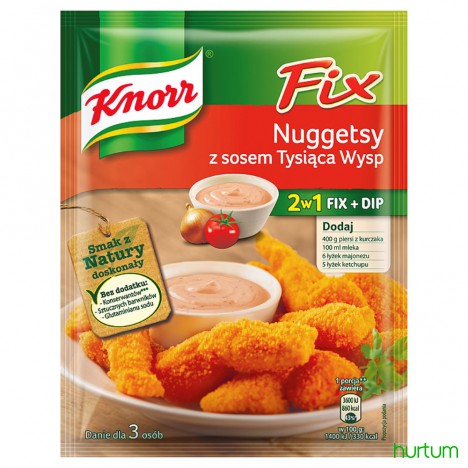 Dzięki Knorr możliwe stało się połączenie pożądanego smaku z wysoką jakością dania. Świeży kurczak prosto z pobliskiego sklepu, trochę chęci i Fix Nuggetsy z kurczaka i już możesz delektować się chrupiącym daniem. Do tego aromatyczny sos tysiąca wysp, z nutką imbiru i czosnku i Twoje danie zachwyci każdego.