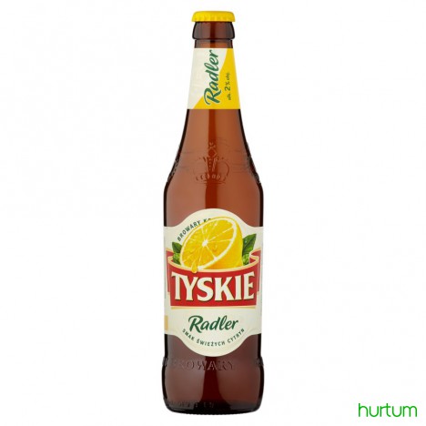 Piwo Tyskie 40% z lemoniadą o smaku cytrynowym 60%. Pasteryzowane.
