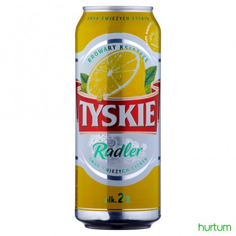 Piwo Tyskie 40% z lemoniadą o smaku cytrynowym 60%. Pasteryzowane.