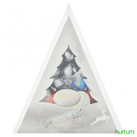 Asortyment pralinek z czekolady mlecznej, mlecznej i białej, gorzkiej z delikatnie rozpływającym się nadzieniem (44%).