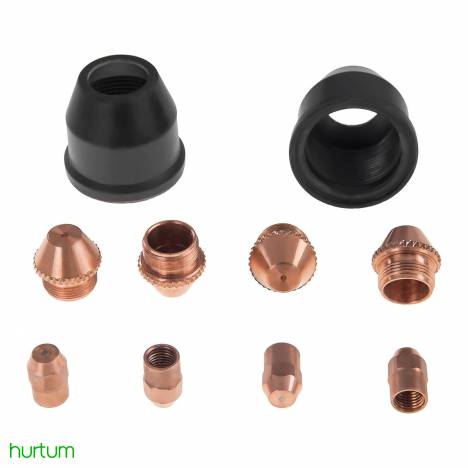 Zestaw pasuje do przecinarek plazmowych 120 amper marki STAMOS GERMANY oraz innych marek z podobnymi gwintami i średnicami: