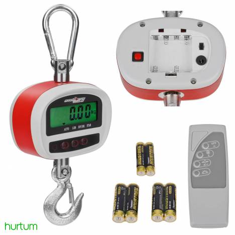 Elektroniczna waga hakowa z pilotem do zdalnego sterowania służąca do ważenia przedmiotów podwieszonych na dolnym karabińczyku. Wygodna w użyciu posiada wiele przydatnych funkcji.