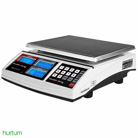 Profesjonalna, elektroniczna waga sklepowa, bardzo dokładna, spełni oczekiwania najbardziej wymagających klientów. Szalka wagi wykonana jest ze stali nierdzewnej, od góry pokryta powłoką ochronną, podstawa z wytrzymałego tworzywa sztucznego oparta na stabilnych, antypoślizgowych i regulowanych nóżkach. Odczyty ważenia są prezentowane są na 3 wyraźnych wyświetlaczach LCD. Pierwszy (NUMBER) prezentuje liczbę przedmiotów, drugi (UNIT WEIGHT) wagę pojedynczego elementu, a trzeci (WEIGHT) ciężar wszystkich rzeczy znajdujących się na platformie.