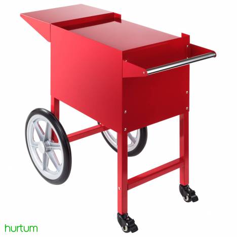 Wózek do maszyny do popcornu Royal Catering pozwala wygodnie i szybko przewozić maszynę do popcornu. Oferowany model wykonany został z solidnych materiałów, idealnie sprawdzi się podczas różnych imprez plenerowych. Wózek mobilny posiada 2 duże koła oraz 2 małe, które zapewniają łatwe przesuwanie wózka i manewrowanie nim na boki. Na mniejszych kołach zamontowano hamulce. Obszerna szafka zmieści potrzebne akcesoria do przygotowywania popcornu.