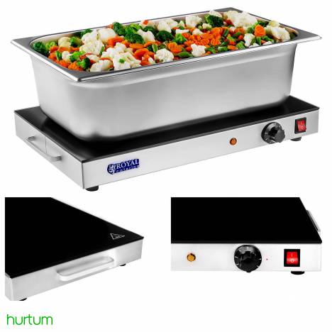Duża powierzchnia grzewcza o wymiarach GN1/1 (53 x 32,5 cm) umożliwia jednoczesne podgrzewanie: