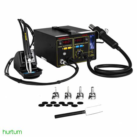 - zintegrowana stacja lutownicza 3w1 (moduł sterujący, lutownica grotowa, moduł HOT AIR)