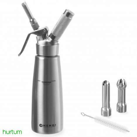 Syfon do bitej śmietany Profi Line 0,5 l umożliwia przygotowanie bitej śmietany, kremów, sosów, musów w sposób łatwy, wygodny i tani.