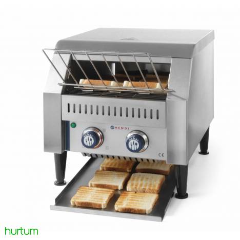 Toster przelotowy marki Hendi. Przeznaczony jest do dużych punktów gastronomicznych gdzie potrzebne jest przygotowanie dużej ilości tostów. Urządzenie może pracować w trybie ciągłym.