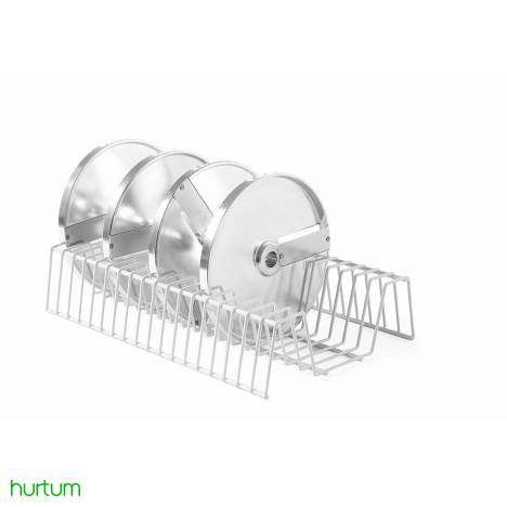 Stojak na tarcze do szatkownicy o pojemności 18 tarcz. Ułatwia przechowywanie tarcz w kuchni.