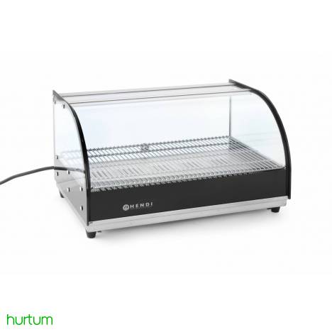 Witrynka grzewcza marki Hendi. Doskonale nadaje się do dużej i małej gastronomii, stacji benzynowych, cukierni czyli wszędzie tam gdzie sprzedawane wcześniej przygotowane wyroby. Witrynka świetnie podtrzymuje ciepło i świeżość potraw. Wyjmowana raca na okruchy ułatwia czyszczenie.