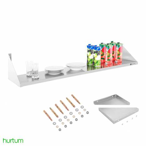 Półka wisząca nierdzewna RCTR-150 300x1500mm Royal Catering sprawdzi się w kuchniach gastronomicznych, laboratoriach, pracowniach, magazynach, warsztatach itp. Montaż ścienny modelu RCTR-150 ułatwia ekonomiczne zagospodarowanie każdego wnętrza.