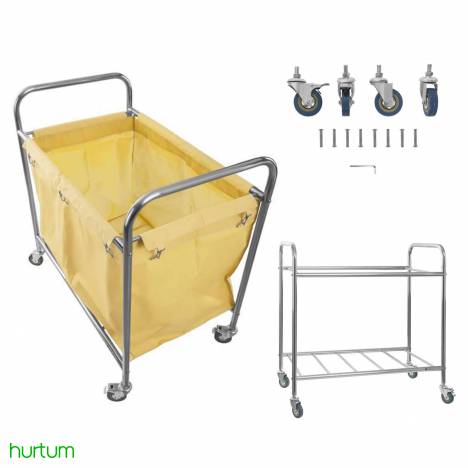 Wózek do przewożenia prania RCWW 1 marki Royal Catering przeznaczony jest do zbierania i przewożenia brudnej bielizny, pościeli oraz ręczników. Stelaż wykonany został ze stali nierdzewnej, natomiast worek z ekoskóry, która od środka pokryta jest gumową powierzchnią. Worek na pranie ma pojemność 250L.