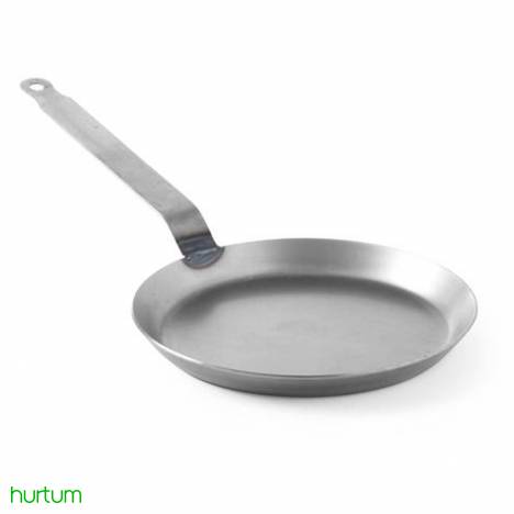 - Tradycyjna płytka patelnia do naleśników wykonana ze stali walcowanej,