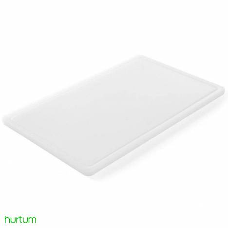 - Profesjonalna deska do krojenia HACCP dwustronna: z jednej strony gładka, z drugiej strony z wycięciem, które zapobiegają wyciekaniu soków