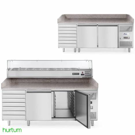 - Stół chłodniczy do pizzy 2-drzwiowy z 7 szufladami z blatem granitowym