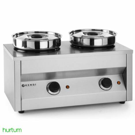 - Wyposażony w 2 emaliowane pojemniki z pokrywkami na wodę