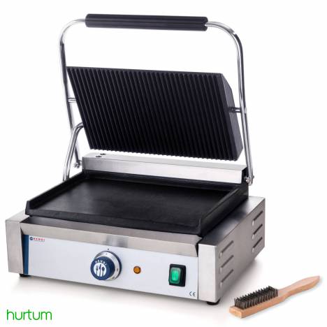 - wyposażony w pojedyncze stanowisko grillujące, ryflowane po obu stronach
