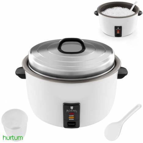 Urządzenie do gotowania ryżu marki Royal Catering pozwala w krótkim czasie przygotować sypki ryż. Model RCRK-10A wyposażony został w funkcje: podtrzymywanie ciepła, automatyczne przechodzenie w stan podgrzewania, dobieranie czasu oraz mocy do ilości ryżu. Wewnętrzny aluminiowy garnek sprawia, że ziarna nie przypalają się, a ryżowar łatwo umyć. W skład urządzenia wchodzi szczelna pokrywa, miarka oraz łyżka. Automat do ryżu charakteryzuje się dużą pojemnością (23 l) i wydajnością (80 porcji), dlatego sprawdzi się na stołówkach, w bufetach, bistrach, kantynach itp.