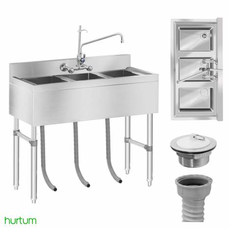 Stół ze zlewem oferowany przez markę Royal Catering RCHS-5 wyposażono w 3 głębokie komory, które pozwalają sprawnie umyć dużą liczbę naczyń. Model RCHS-5 stworzono z myślą o profesjonalnych kuchniach (m.in. hotelowych, szkolnych czy szpitalnych). Zlewozmywak w całości wykonany został ze stali szlachetnej, która jest odporna na korozję oraz uszkodzenia mechaniczne. Z tyłu znajduje się rant chroniący ścianę przed chlapiącą wodą. W skład zestawu wchodzą m.in. rury odpływowe, sitka i nóżki – ich wysokość można samodzielnie regulować.