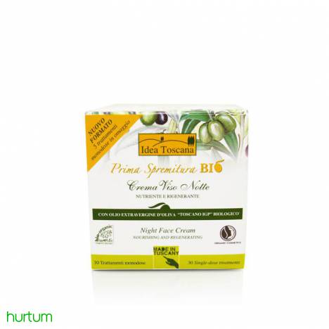 Naturalny Krem do twarzy na noc wzbogacony masłem kakaowym i oliwą z toskańskich oliwek "Organic Toscano IGP Olive Oil" certyfikowany przez: "BIO-ORGANIC" i "NATRUE"