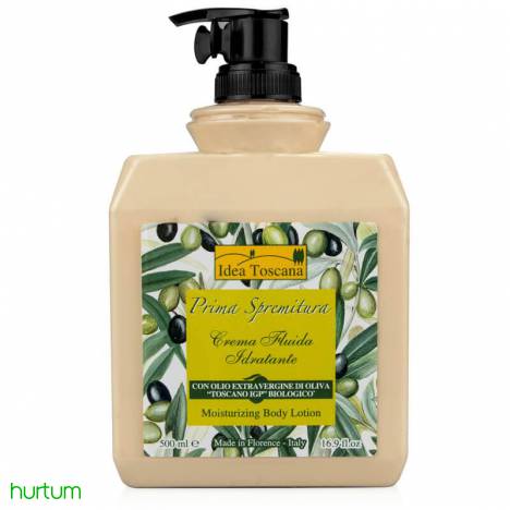 Ekskluzywna formuła balsamu do ciała Idea Toscana, wzbogacona naturalnymi i roślinnymi składnikami aktywnymi takimi jak organiczna oliwa z oliwek "Organic Toscano IGP Olive Oil", masło SHEA i kakaowe, ekstrakt z aloesu i gliceryna, nadaje skórze elastyczności i zdrowego wyglądu pozostawiając ją optymalnie nawilżoną.