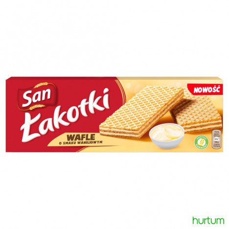 Wafelki z nadzieniem (71%) o smaku waniliowym.