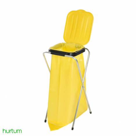 Stojak na worki na śmieci do segregacji Standardowa seria stojaków. Przystosowane do zbiórki odpadów segregowanych. Konstrukcja stojaków z ocynkowanych rurek. Pokrywa i ramka na worek z plastiku. Dostarczane w stanie rozłożonym (łatwy i szybki montaż). Odpowiednie do pomieszczeń wewnętrznych. Do stojaków polecamy worki na śmieci o pojemności 120L dostępne w naszej ofercieParametry: Wymiary 350x360x800 mm Waga 2kg Kolor pokrywy żółtyW zestawie: Stojak na niebieskie worki do segregacji śmieci