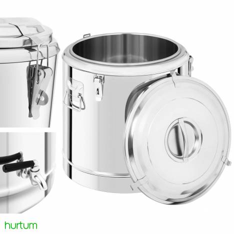 Cechy produktu: - Pojemność - duży zbiornik 50L. - Wygoda - łatwe przechowywanie i transport żywności. - Termoizolacja - utrzymuje ciepło do 12 godzin. - Kran spustowy - dozowanie bez rozlewania. łatwe czyszczenie. - Wytrzymałość - wykonany ze stali nierdzewnej. - Mobilność - rączki do przenoszenia termosu.