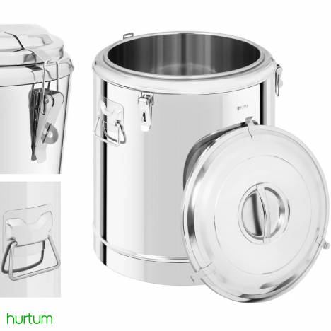 Cechy produktu: - Pojemność - duży zbiornik 60L. - Wygoda - łatwe przechowywanie i transport żywności. - Termoizolacja - utrzymuje ciepło do 12 godzin. - Wytrzymałość - wykonany ze stali nierdzewnej. - Mobilność - rączki do przenoszenia termosu.