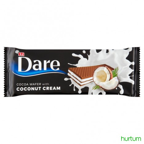 Wafel kakaowy (27%) z kremem kokosowym (73%).