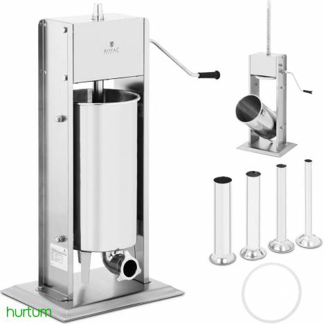 Pionowa nadziewarka do kiełbas marki Royal Catering idealnie sprawdzi się do nabijania otoczki farszem mięsnym aby otrzymać kiełbasę lub inny rodzaj wędlin w sklepach masarskich, działach mięsnych w supermarketach oraz w użytku domowym.