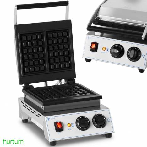 Gofrownica marki Royal Catering idealnie sprawdzi się w kawiarniach, restauracjach, na festynowych stoiskach czy w food truckach do wyrobu gofrów. Urządzenie posiada dużą wydajność - 1500 W, co zapewnia szybką gotowość do pracy. Temperatura regulowana jest w zakresie 50-300C. Urządzenie posiada automatyczny termostat. Czas pieczenia wynosi 1-5 min (funkcja timer). Płyty grzewcze o wymiarach 170 x 210 mm wykonane zostały z żeliwa i pokryte teflonem. Rynienka zapobiega wyciekaniu ciasta. Obudowa wykonana została ze stali nierdzewnej. Za bezpieczeństwo odpowiada termiczna rączka i antypoślizgowe nóżki.