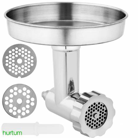 Cechy produktu: - Profesjonalizm - akcesorium do mikserów planetarnych RCPM-7,1D i RCPM-7,1C, - Wszechstronność - dwa sitka do drobnego i grubego mielenia, - Praktyczność - duża taca na mięso i plastikowy popychacz ułatwiają pracę, - Higieniczność - gładka powierzchnia ułatwiająca czyszczenie, - Trwałość - dzięki wysokiej jakości wykonaniu ze stali nierdzewnej.