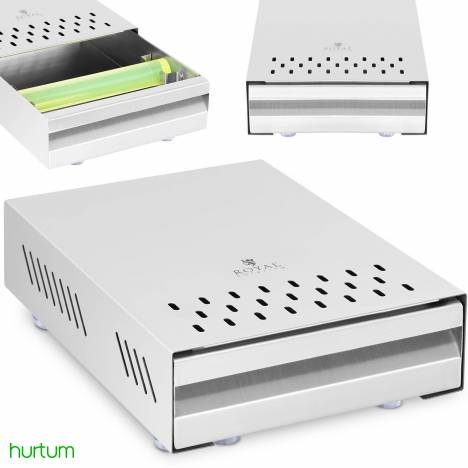 Praktyczna szuflada z odbijakiem marki Royal Catering pozwala w skuteczny sposób usunąć fusy z głowicy od ekspresu. kosza lub filtra. Sprawdzi się idealnie w często obleganych miejscach: kawiarniach. cukierniach. restauracjach. barach itp. Akcesorium świetnie nadaje się do ustawienia pod młynek do kawy. Pojemność 5.7 l oraz głębokość misy 7 cm. Dzięki temu zbiornika nie trzeba często opróżniać. Całość została wykonana z solidnej stali nierdzewnej.