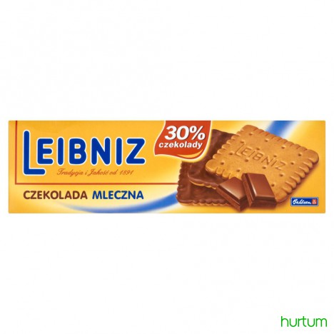 Każdy herbatnik Leibniz zawiera oprócz starannie dobranych składników, 100 lat tradycji wypieku ciastek. Leibniz w czekoladzie - to wyjatkowo kruchy herbatnik wyprodukowany ze świeżego masła oraz 30% pysznej czekolady. Leibniz - łakomy kąsek i pyszna czekolada.