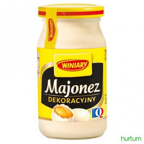 Majonez Dekoracyjny Winiary to gęsty, kremowy majonez, o doskonałej jakości i wyjątkowym smaku. Smak i kremowa konsystencja niezmienne od lat dzięki tradycyjnej recepturze i stałej trosce o najwyższej jakości składniki sprawiają że należy do najchętniej kupowanych produktów w Polsce. Majonez Dekoracyjny podkreśla i urozmaica smak potraw i jest doskonałym dodatkiem do jajek, sałatek, zimnych przystawek. Zainspiruj się smakiem Majonezu Dekoracyjnego!